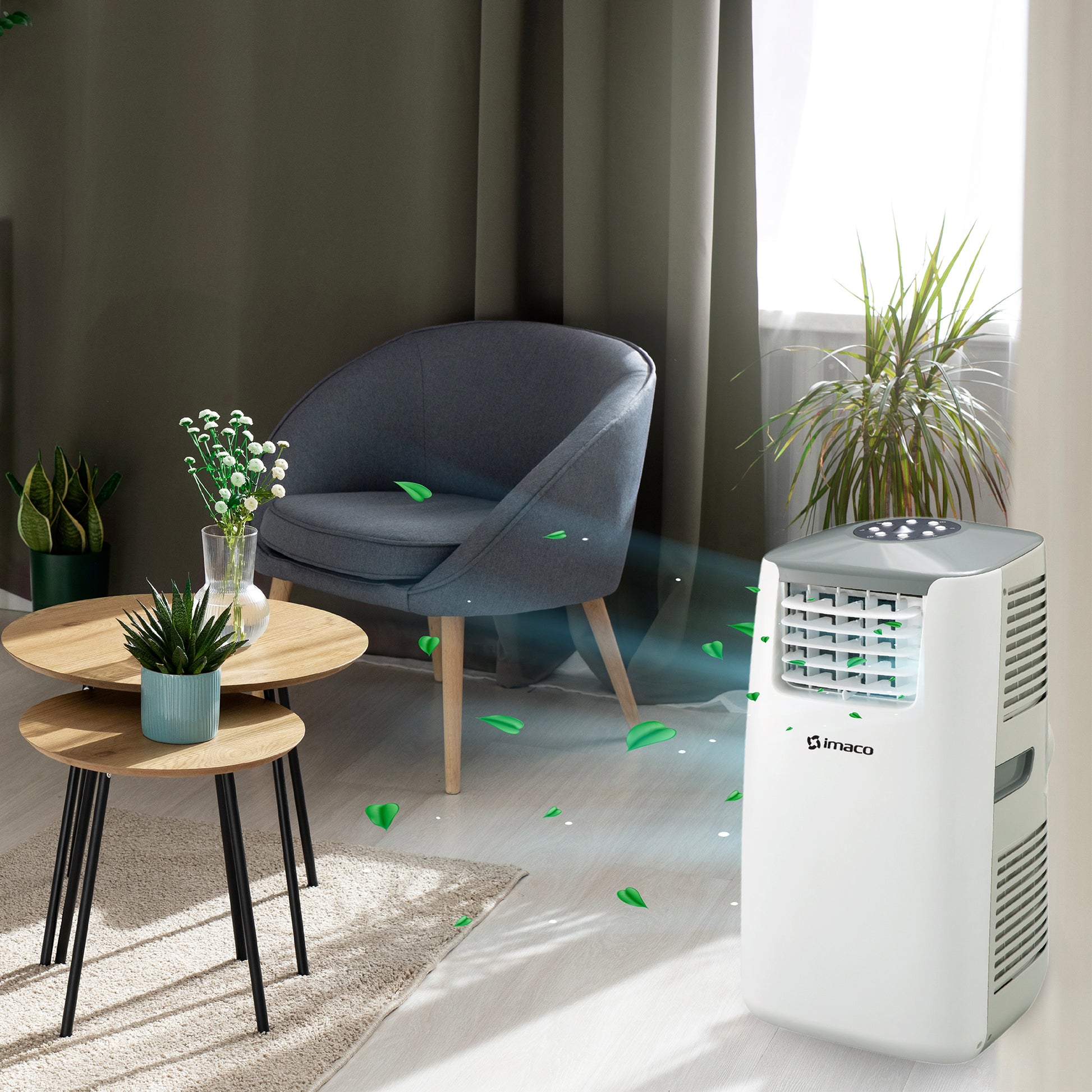 El aire acondicionado portátil AC1263 de Imaco ofrece una potencia de enfriamiento superior gracias a sus 12,000 BTU, ideal para espacios medianos que requieren una climatización rápida y estable. Su panel digital y funciones avanzadas lo convierten en una solución práctica, moderna y adaptable para el hogar u oficina.