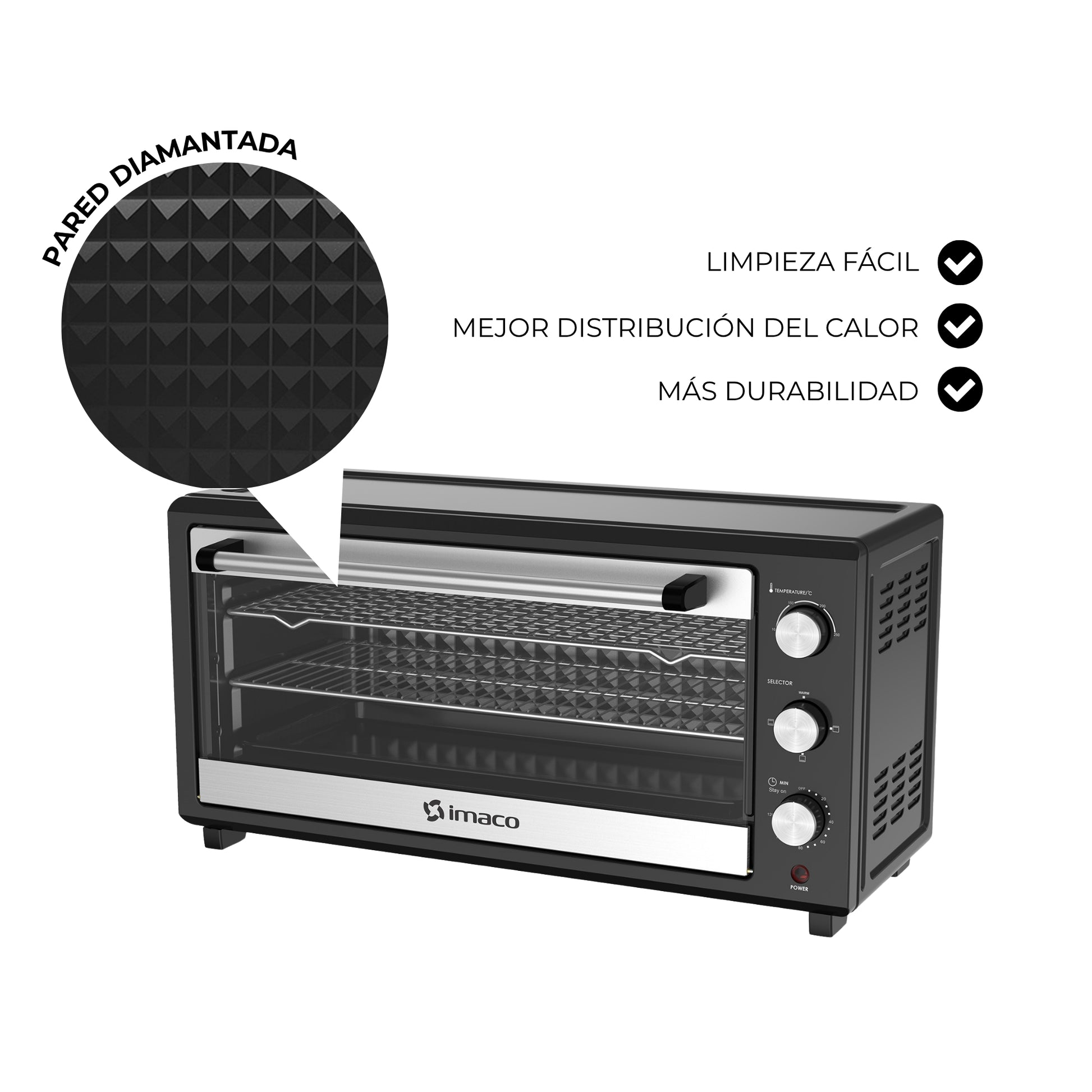 - Gran cavidad interior para hornear dos pasteles simultáneamente